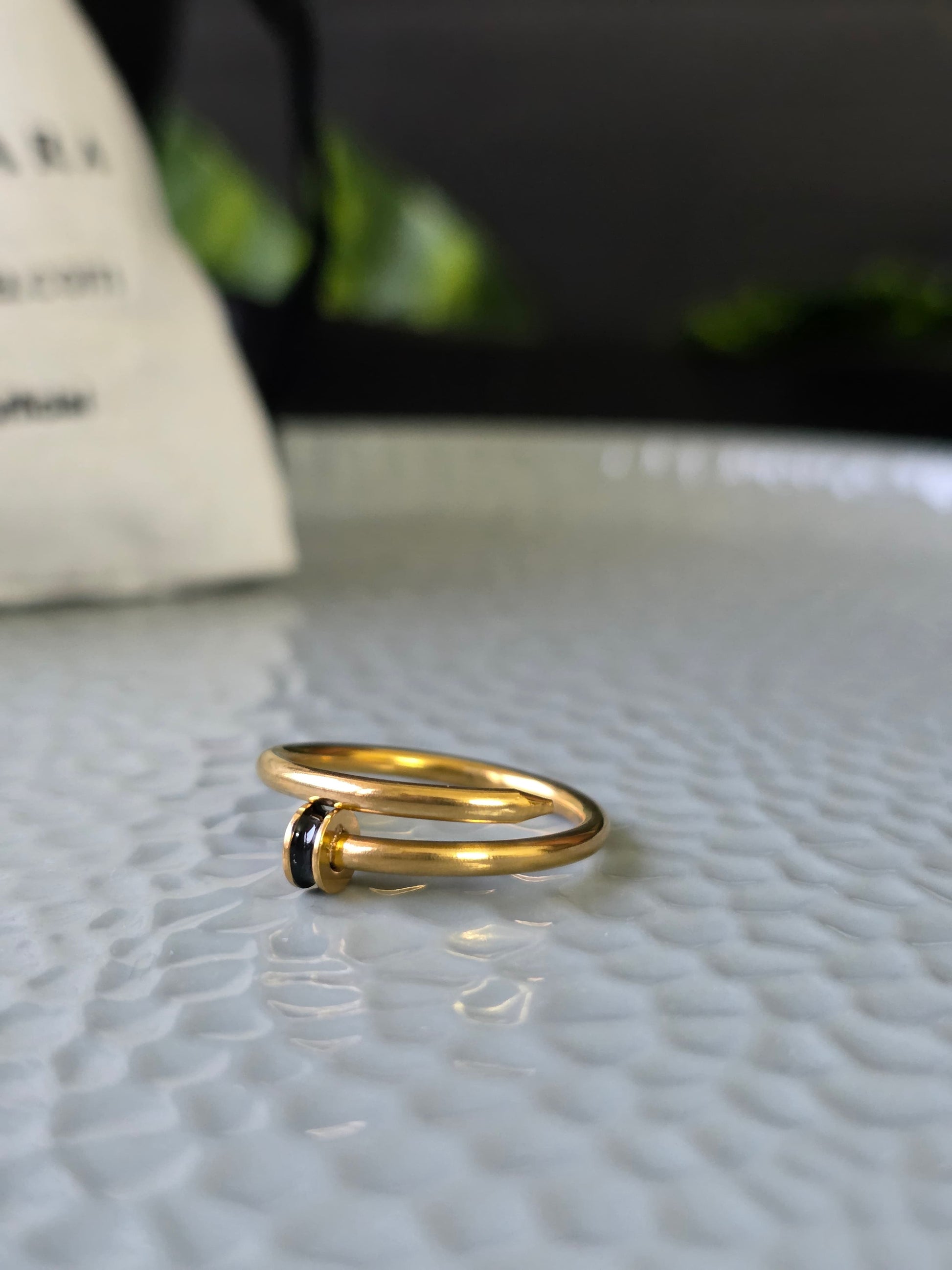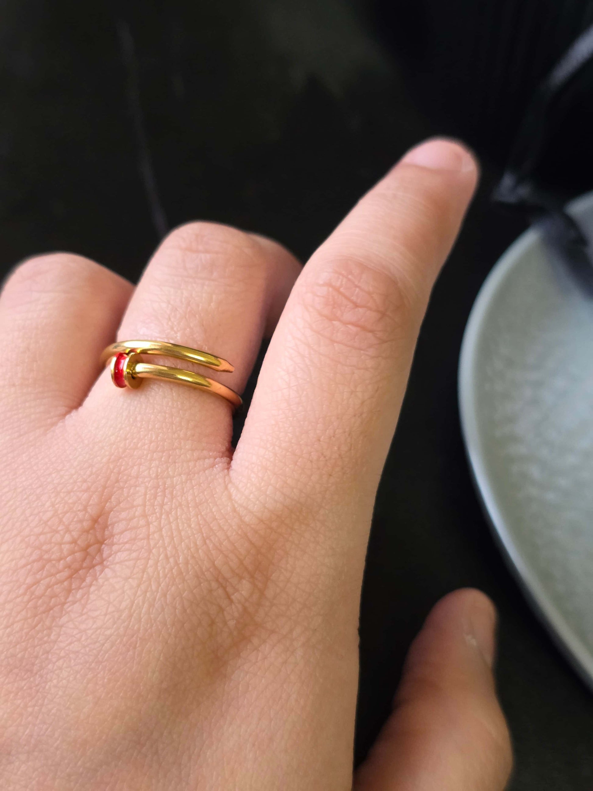 Design: Nail-inspired open band with enamel accent