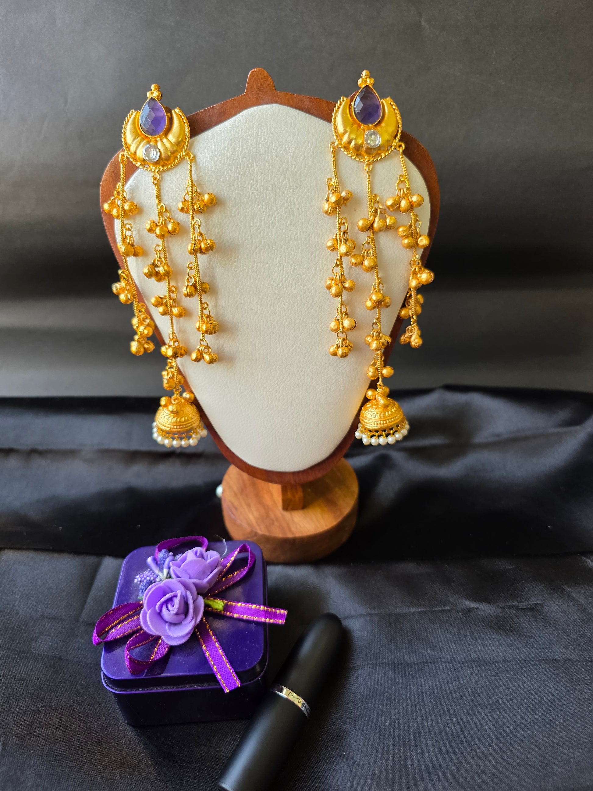 Designed to make a bold statement, the Charita Earrings are perfect for weddings, Navratri festivities, and cultural celebrations. Their long, flowing design beautifully complements sarees, lehengas, and even Indo-western outfits, ensuring you stand out effortlessly.