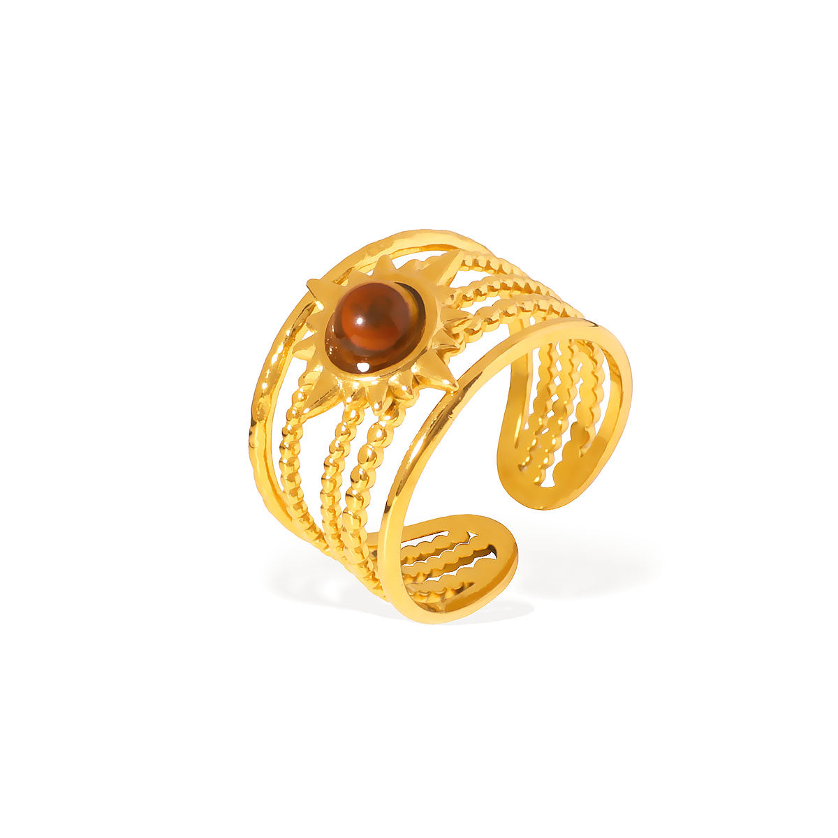 Crafted in 18K Gold Plated premium stainless steel with gold tones, its detailed openwork design reflects golden rays surrounding a central sun — a reminder that even in stillness, your inner fire shines.