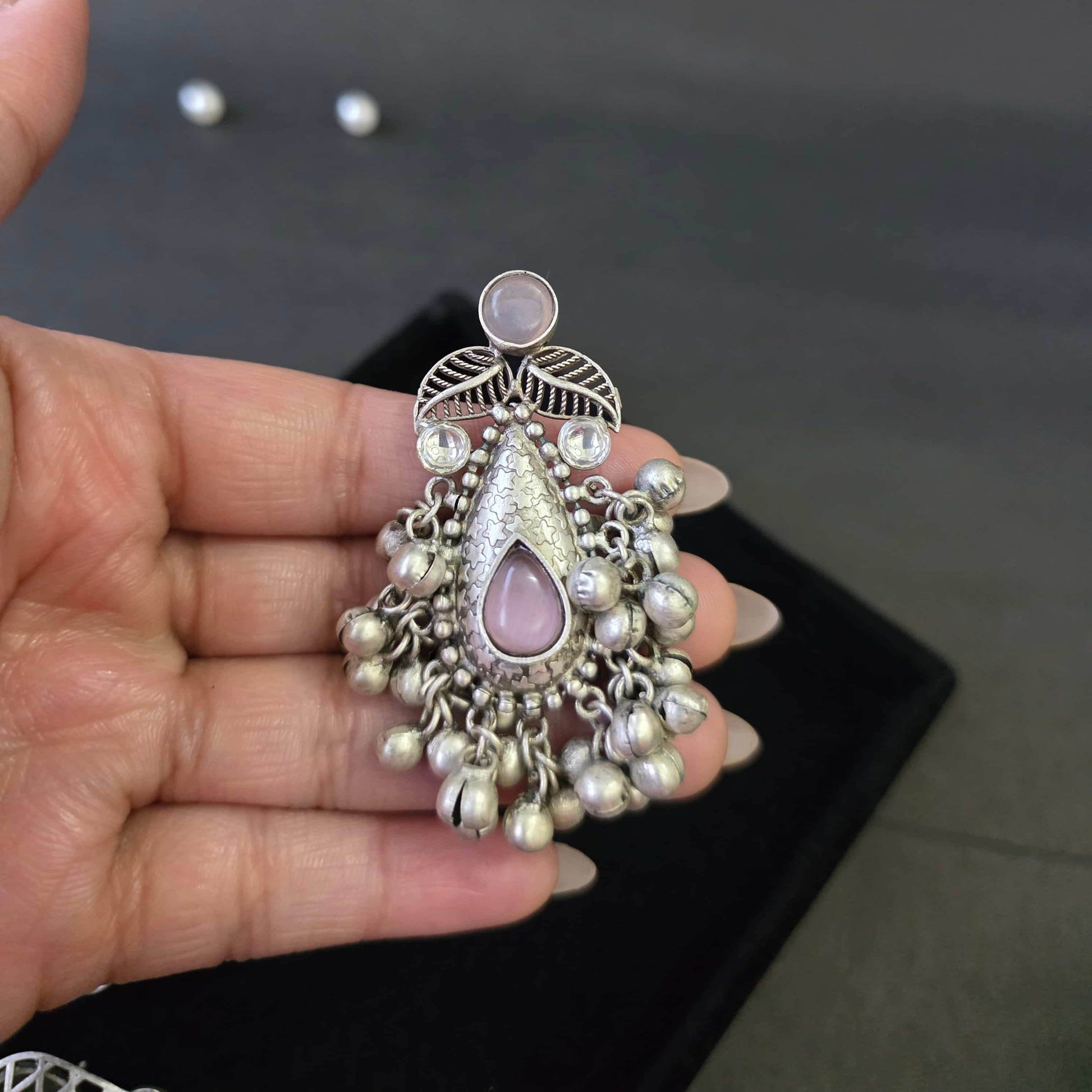 The combination of vibrant stones and jingling ghungroos gives this piece a festive soul, perfect for pairing with ethnic or Indo-western looks. Its adjustable design ensures the ring fits comfortably while still making a powerful statement.