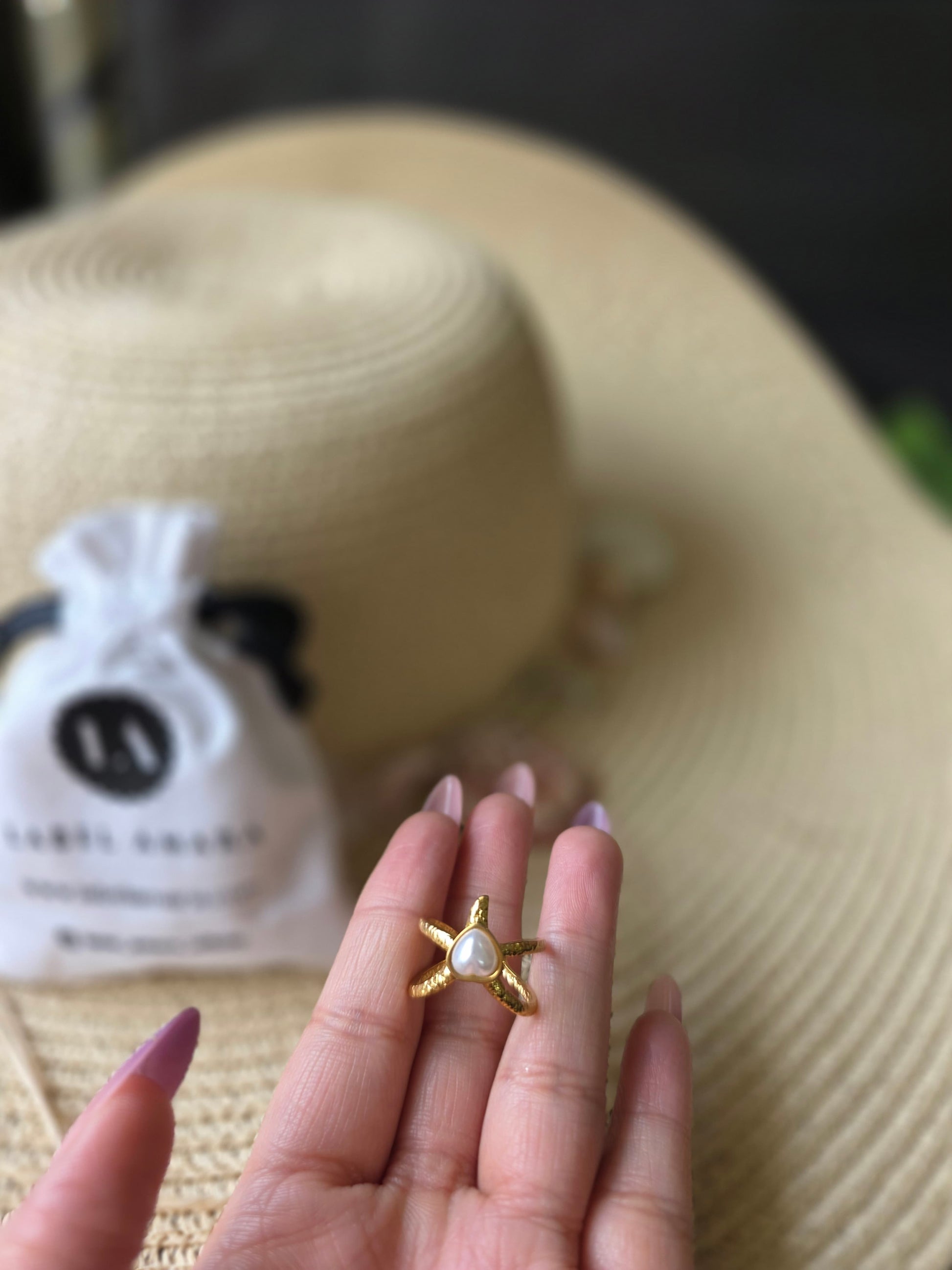 Perfectly balancing organic movement with modern craftsmanship, this adjustable ring adds a touch of seaside sophistication to any look. Its waterproof, non-tarnish, and hypoallergenic build ensures your radiance stays untouched, season after season.
