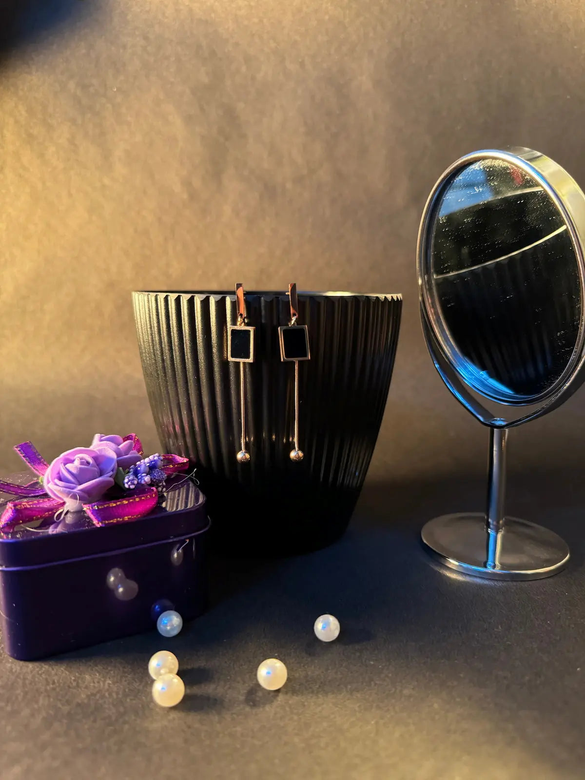 Bold, mysterious, and effortlessly glamorous — the Midnight Earrings are your perfect after-dark statement. Crafted in yellow gold-toned stainless steel that’s anti-tarnish and built to last, these dangling earrings feature deep black studs paired with a delicate drop, creating a dramatic silhouette that moves with you.