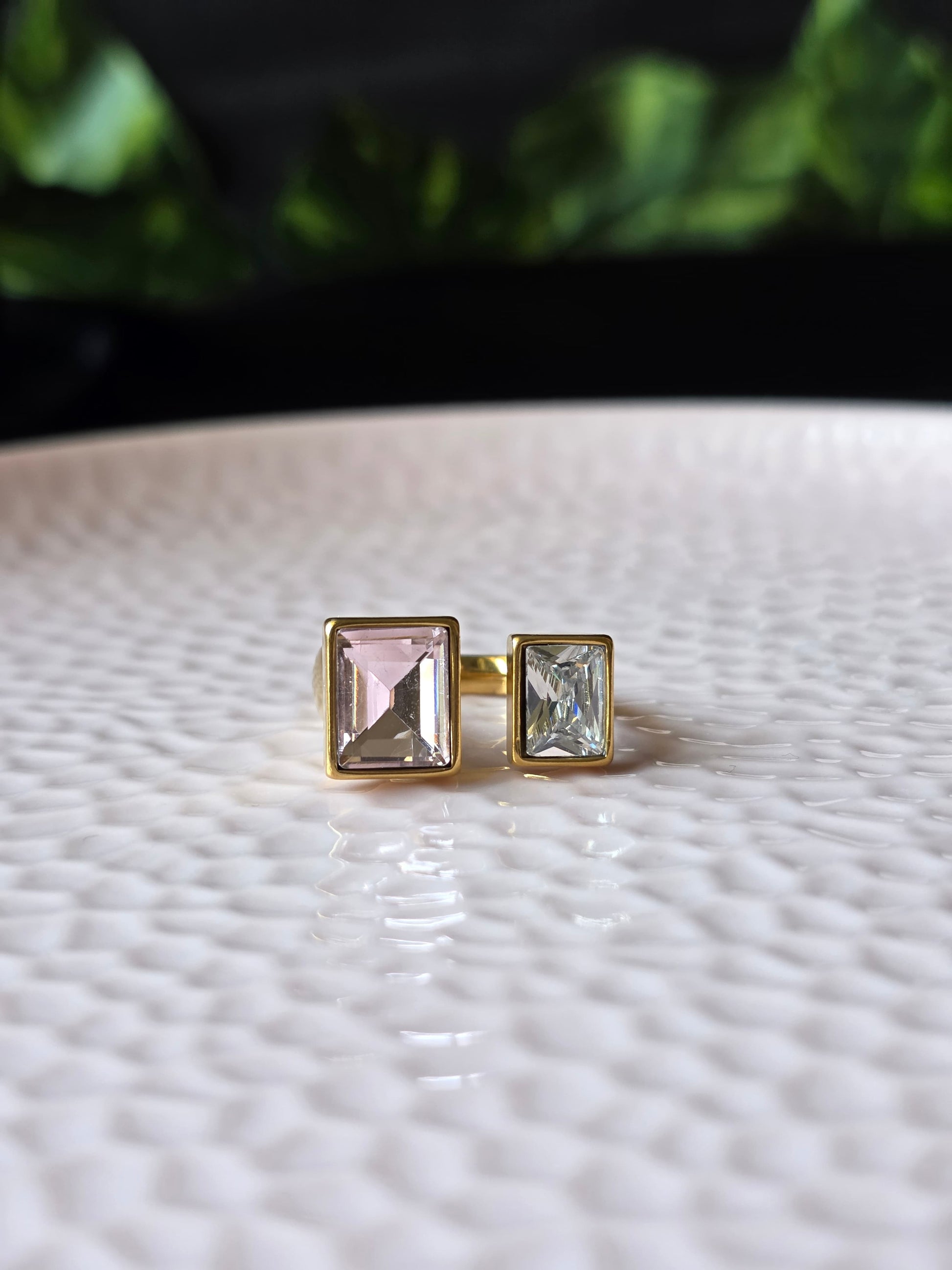 The Orryelle Ring celebrates the poetry of duality — where contrasts meet and find harmony. Crafted in premium stainless steel with 18K gold plating, its open dual-stone design symbolizes balance, connection, and radiant self-expression.