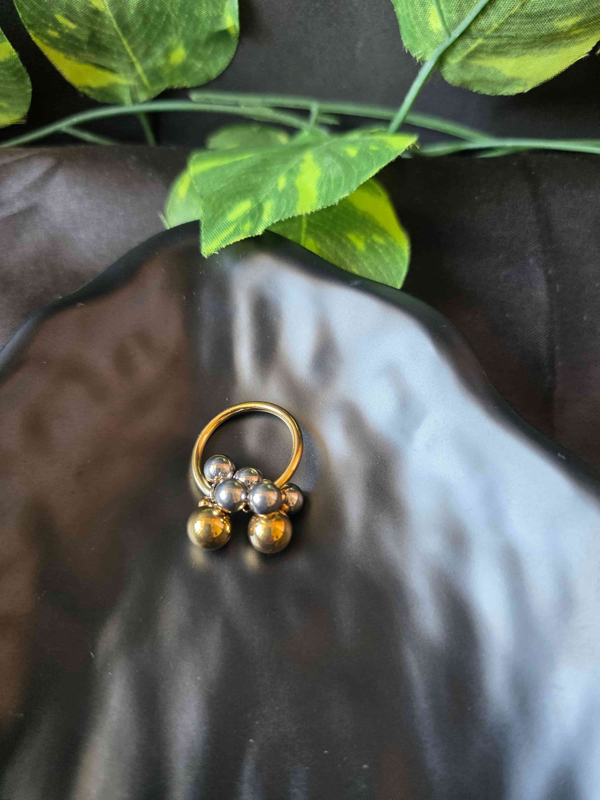 The Rivane Duo Orb Ring is a celebration of contrast — bold yet graceful, minimal yet magnetic — transforming contemporary design into wearable art.